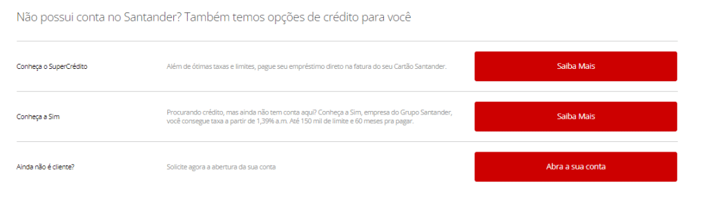 Se você ainda não possui uma conta ou cartão do Santander, pode solicitar um empréstimo por meio da Sim, uma empresa do Grupo Santander.