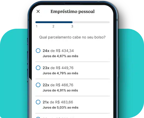 - No menu, selecione ‘empréstimo pessoal’ e clique em ‘Simular’;