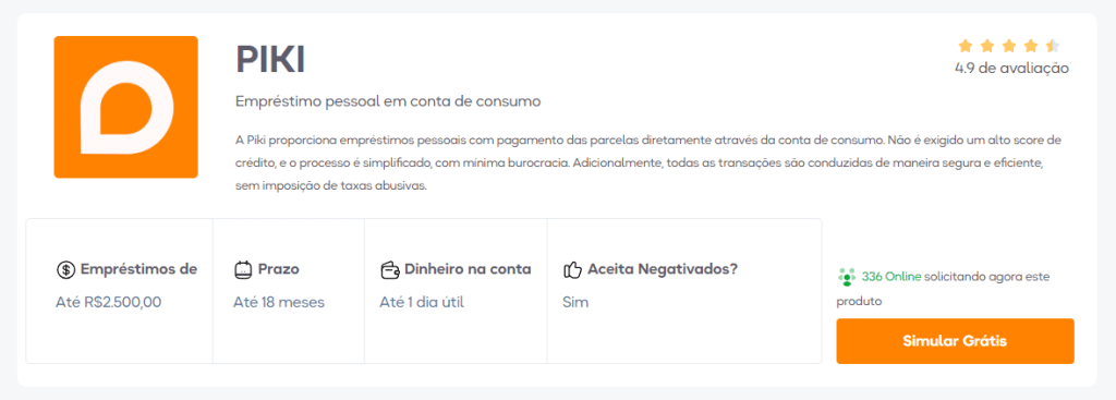 Agora que você já tem todas essas informações, acesse o site da Piki e faça a simulação do empréstimo. Lembre-se de conferir o valor das parcelas e se elas cabem no seu orçamento.