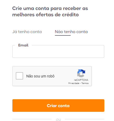 - Se não tiver uma conta, preencha seu e-mail, confirme que não é um robô e prossiga;
