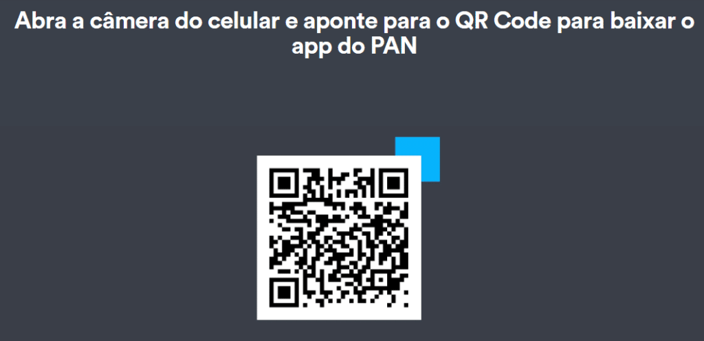 - Em seguida, baixe o aplicativo do Banco Pan com o QR Code disponível na página;